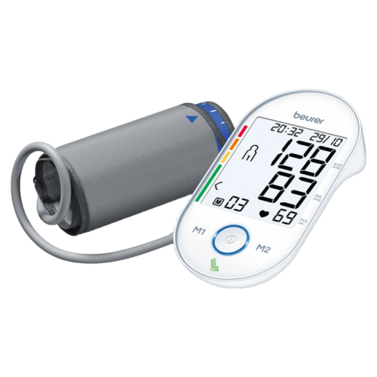 The upper arm blood pressure monitor featuring the patented resting indicator and additional extras such as a white illuminated XL display and touch sensor buttons stands out from the crowd and provides optimum safety and quality with every blood pressure measurement. Thanks to the PC interface and USB cable, the measurements can be transferred simply and conveniently to the PC and managed using the free "beurer HealthManager Pro" software.