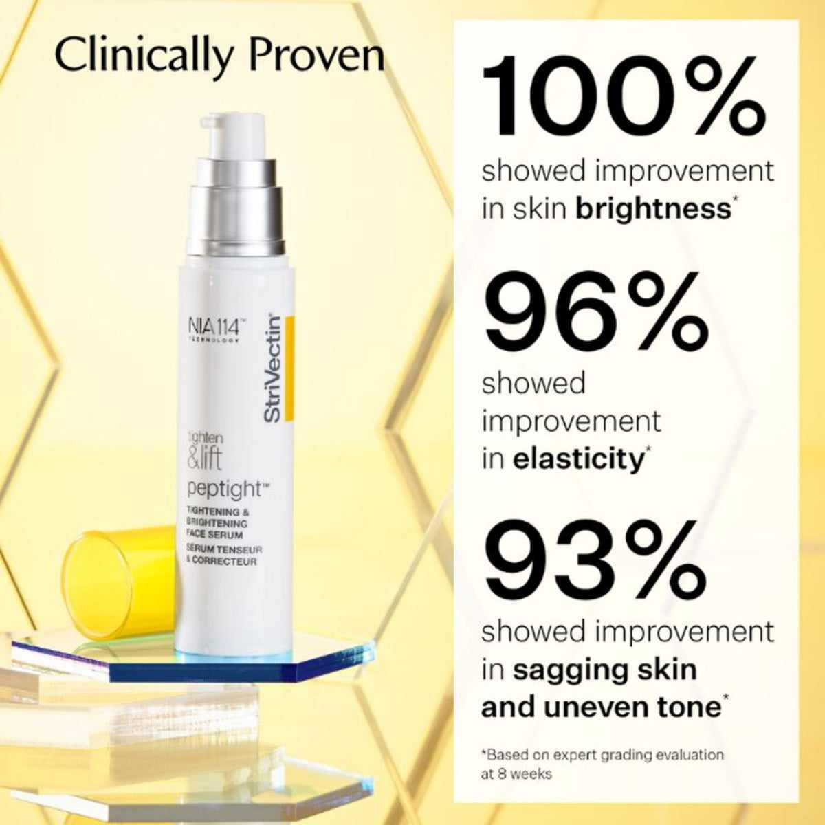 Visibly tightens and firms skin while brightening and evening skin tone
