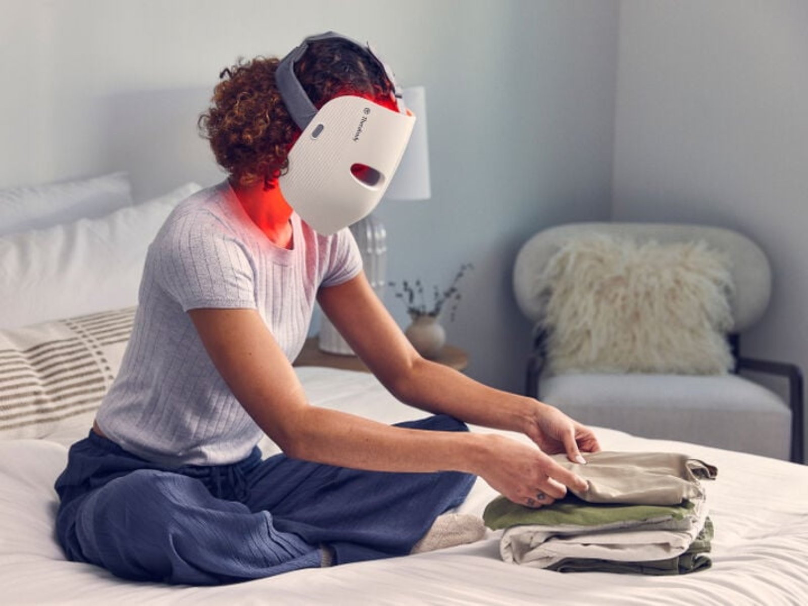 2. Apply the TheraFace Mask: Gently remove the mask from its packaging and place it evenly over your face, ensuring that the openings align with your eyes, nose, and mouth.