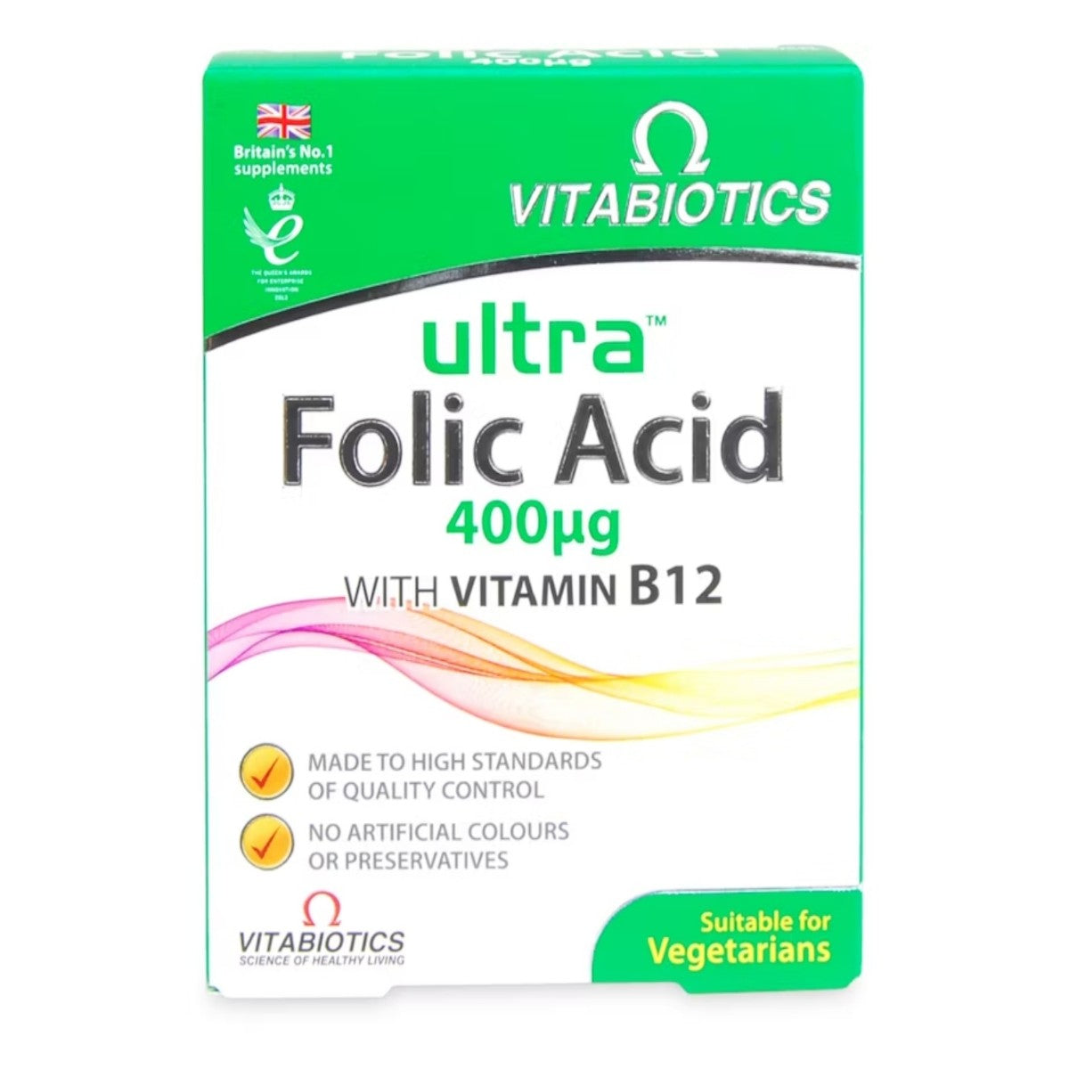 Ultra Folic Acid from Vitabiotics is formulated with 400µg folic acid, carefully balanced with 5µg vitamin B12. Folic Acid, also known as folate or vitamin B9, is important before & during pregnancy and for men and women of all ages for general wellbeing.