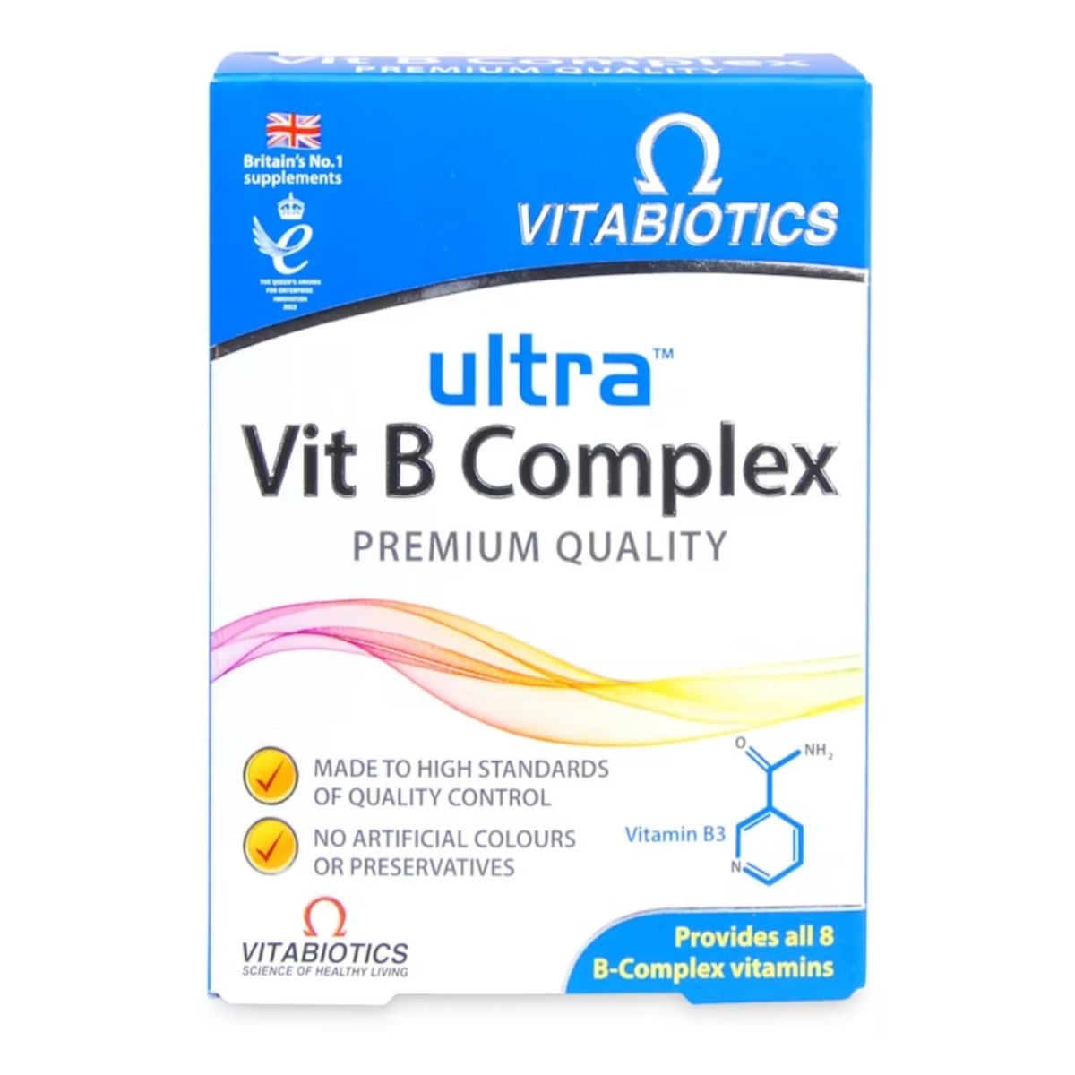 Ultra Vit. B Complex from Vitabiotics includes all 8 essential B vitamins that play a truly remarkable role in the body, essential for helping to maintain all round health including hair and skin health, and a normal nervous system. The B vitamins are water-soluble vitamins, this means that they are excreted in the urine and can be quickly depleted from the body, which means a daily vitamin like Ultra Vit. B Complex can help to safeguard your daily intake of essential B vitamins.