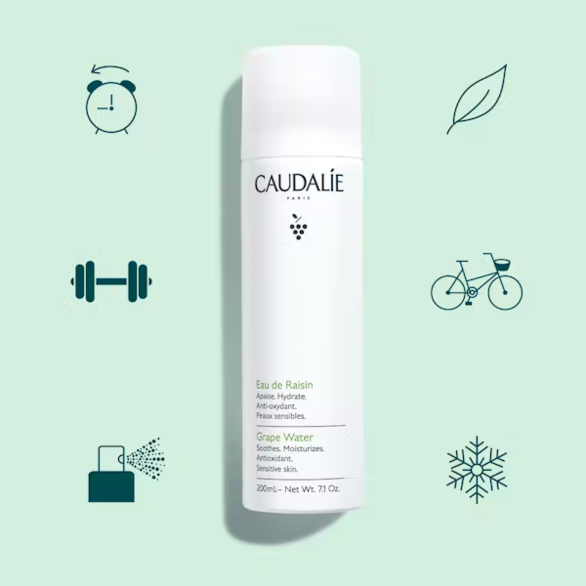 This plant water mist hydrates and soothes sensitive skin. Anti-oxidant and prebiotic, it is formulated with 100% organic grapes.