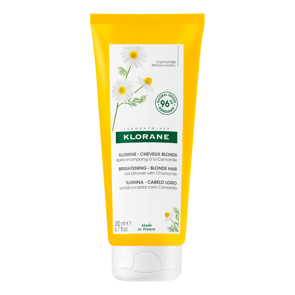 The Camomile Conditioner is formulated to care for natural, dyed or highlighted blonde hair from three years old. We have chosen the Matricaria recutita L. species of camomile for its richness in apigenin, a natural brightening plant-based active ingredient that provides beautiful and golden highlights. Used alongside our Camomile Shampoo, this natural* product hydrates, detangles and brightens dull hair without weighing it down. Thanks to its creamy, melting texture, the conditioner makes it easier to detangle hair, leaving it soft and smooth.