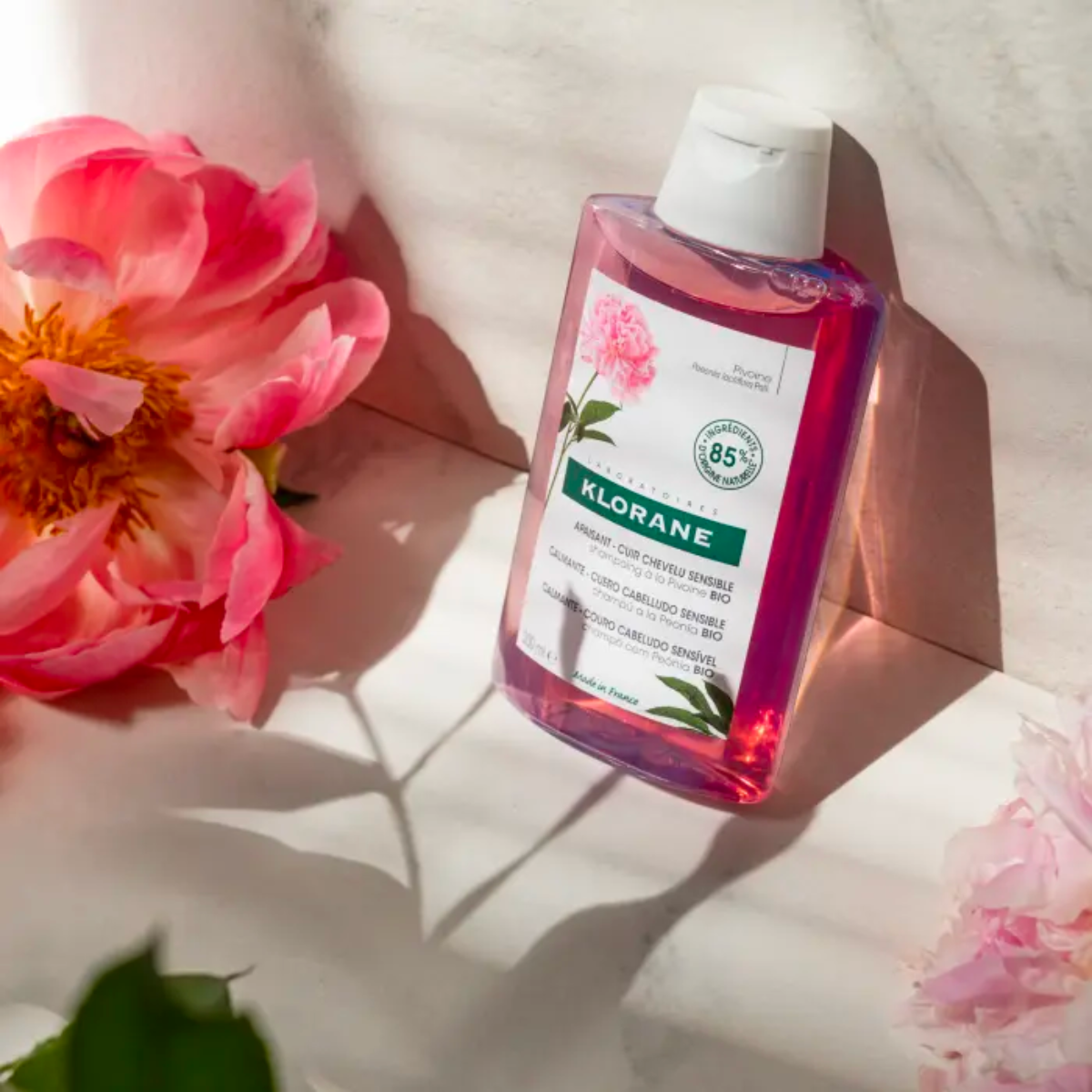 The Shampoo with Organic Peony washes, protects and soothes sensitive scalps for 24 hours*.