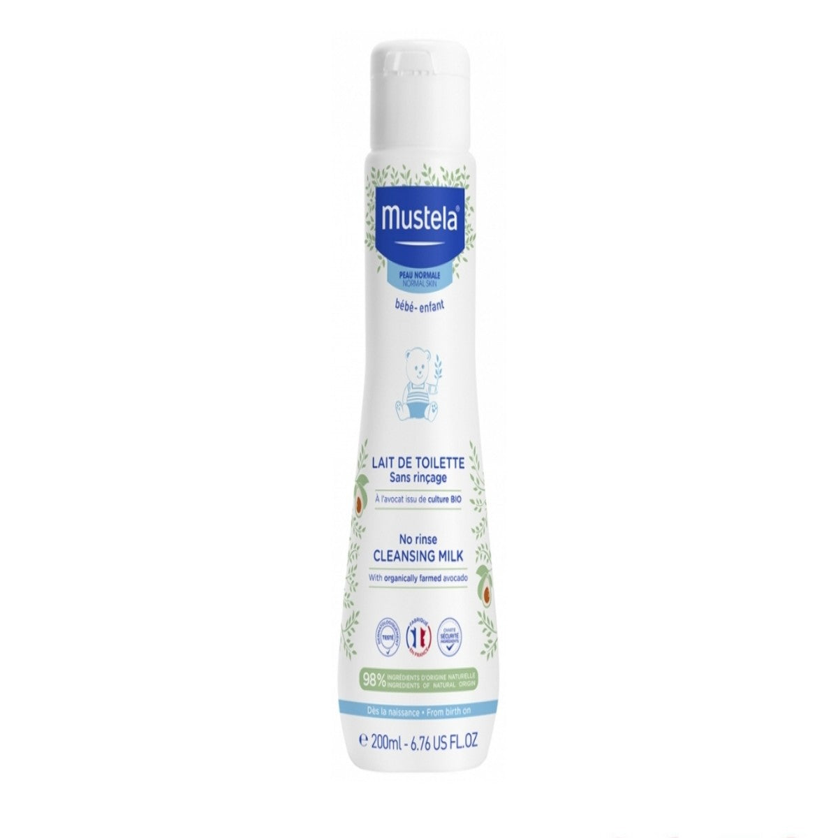 Mustela No Rinse Cleansing Milk 200 ml is a high skin tolerance milk that can be used from birth to gently and effectively remove impurities from the face and buttocks. Formulated with organically farmed avocado, it prevents skin dryness.