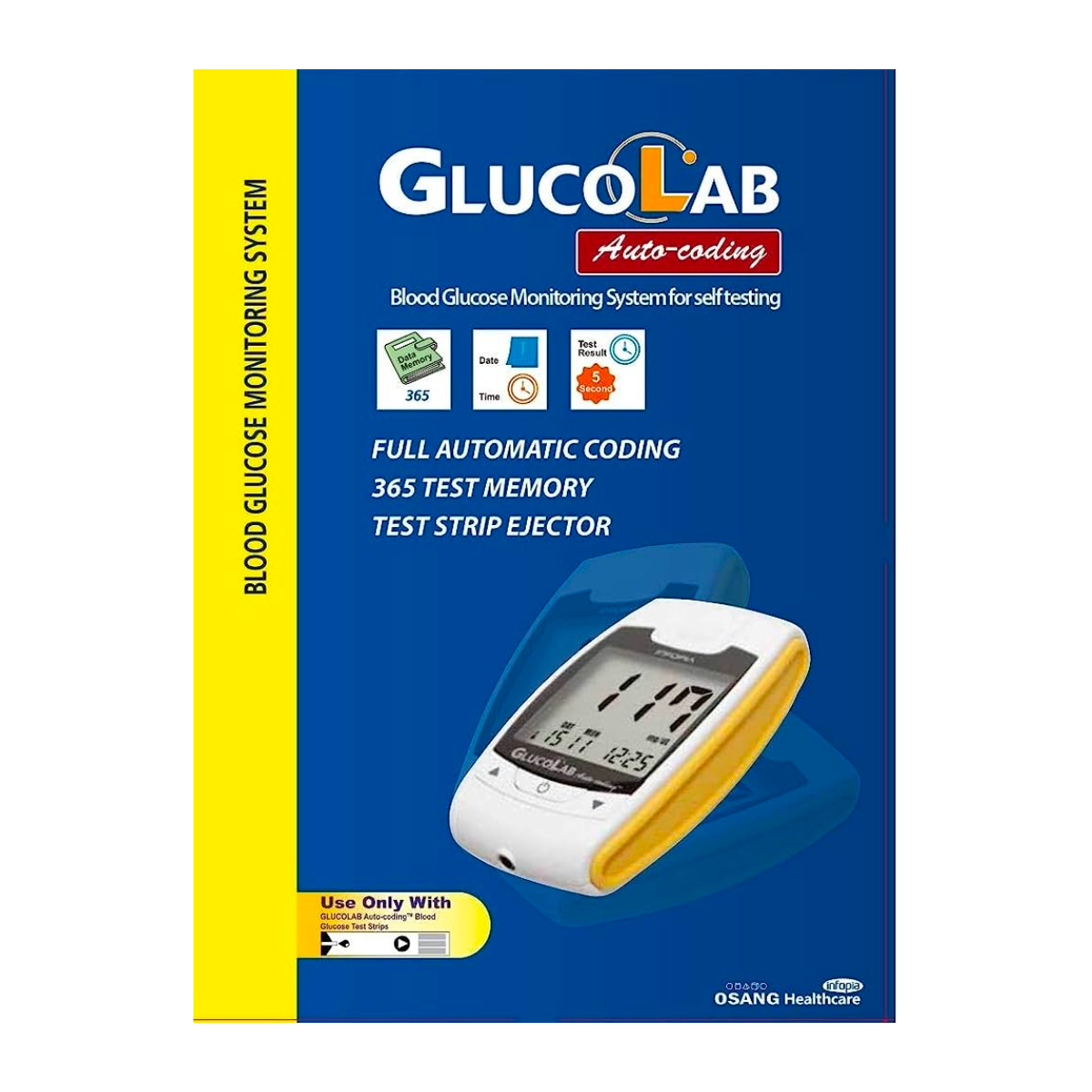 The GlucoLab™ Auto-coding Monitor provides results in 5 seconds using only 1µL of blood. Not just a monitoring device, the GlucoLab™ Auto-coding meter is designed to be used as a disease management tool.