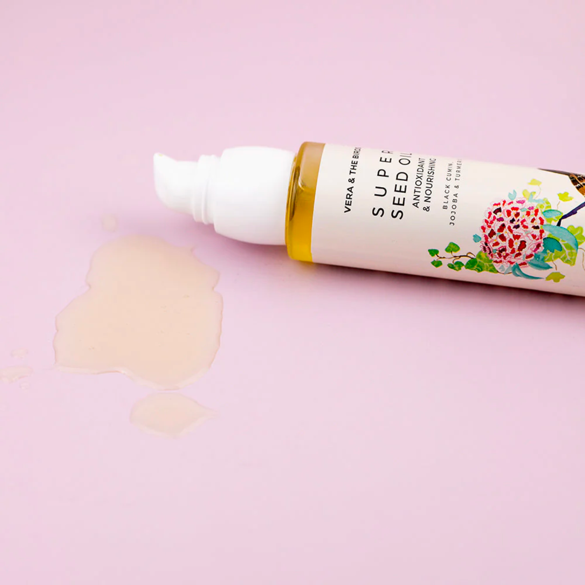 Our Super Seed OIl is your secret weapon against dull, rough, tight or dry skin. The jojoba, evening primrose and black cumin organic oils help to protect and repair the skin’s protective barrier, restoring the skin’s firmness and smoothing away fine lines. It is ideal for combination, dry, very dry and normal skins.